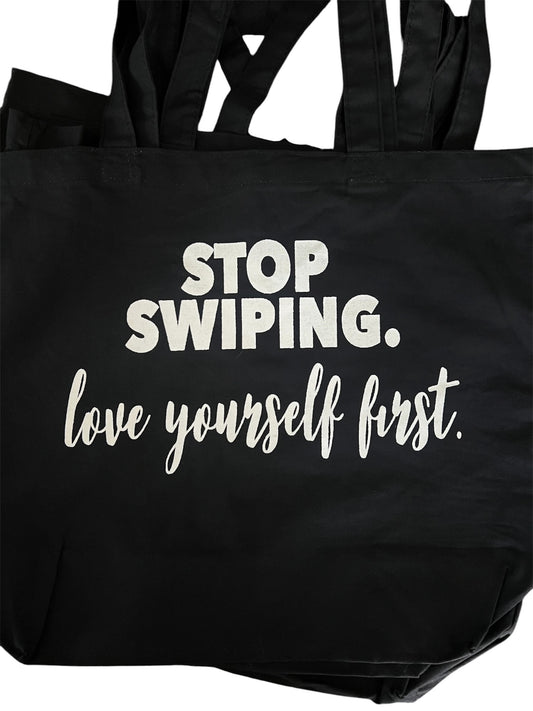 "Stop Swiping. Love Yourself First" Canvas Tote Bags